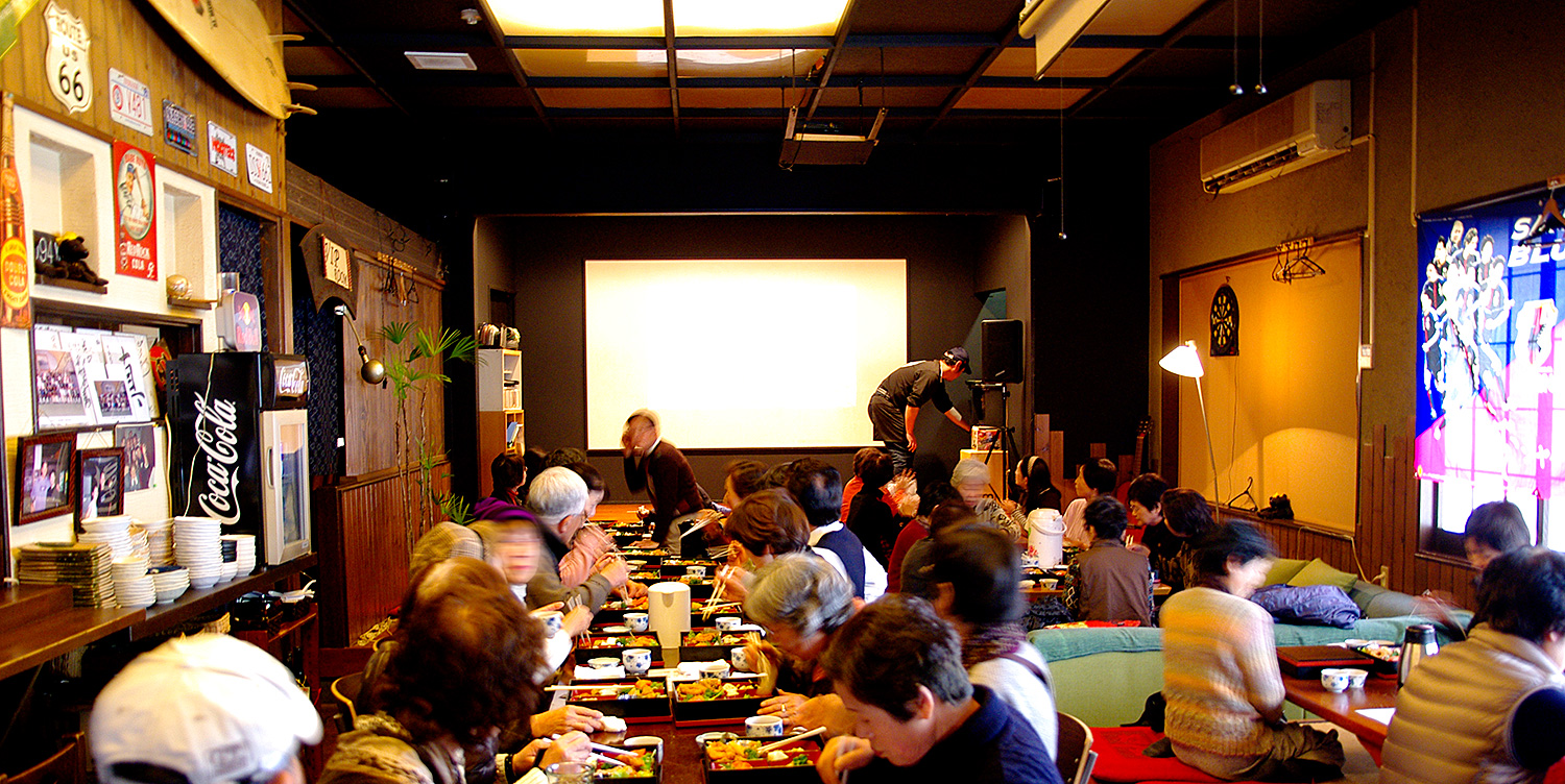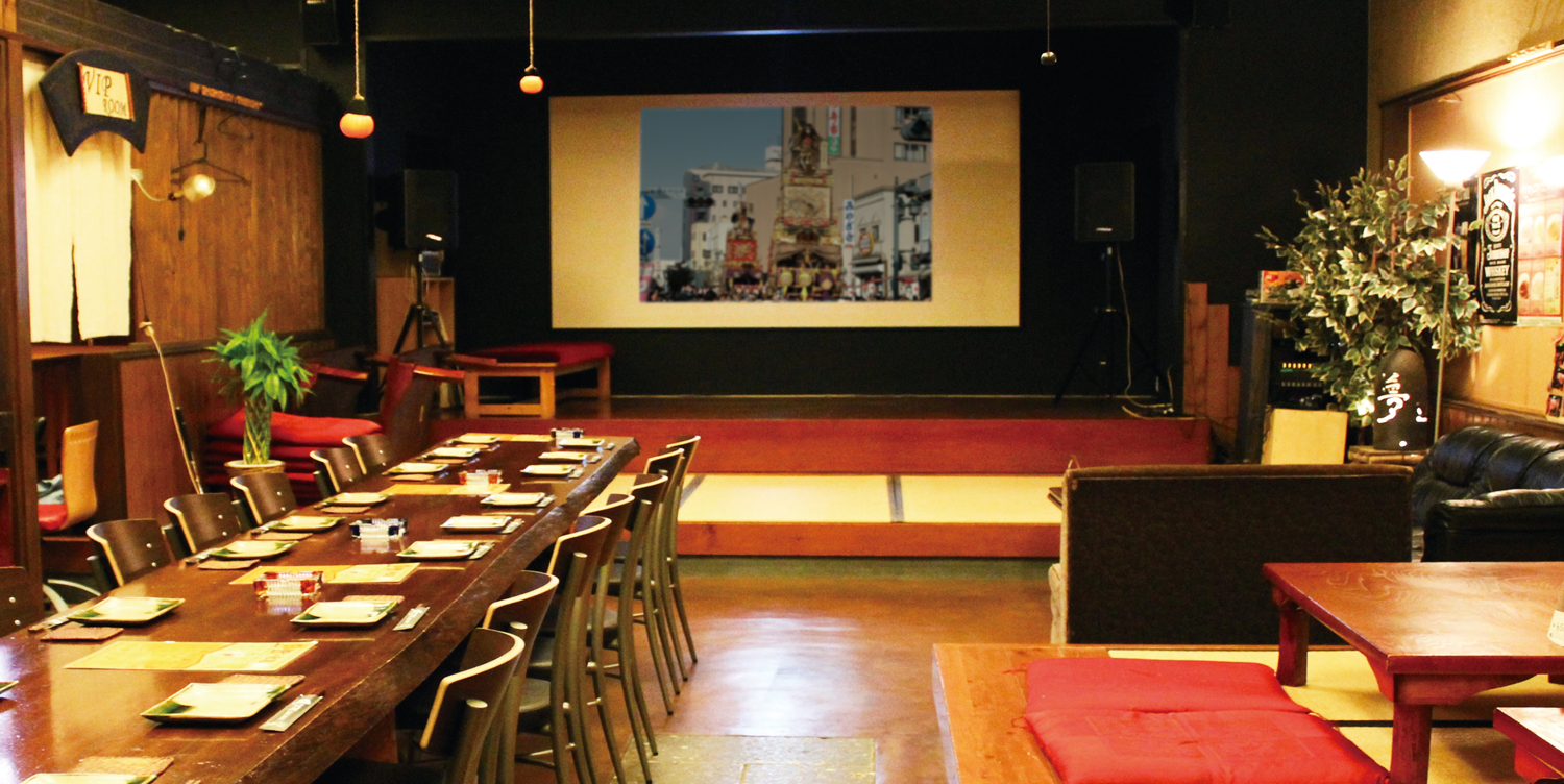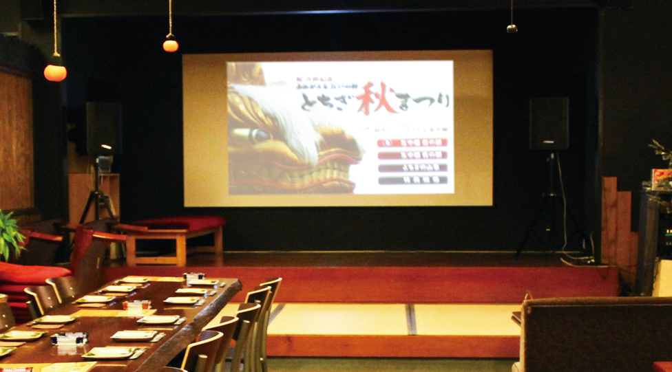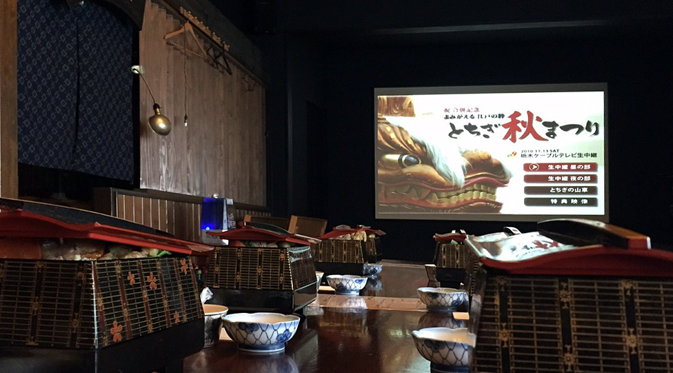 大型スクリーンに映し出される栃木伝統の秋祭り